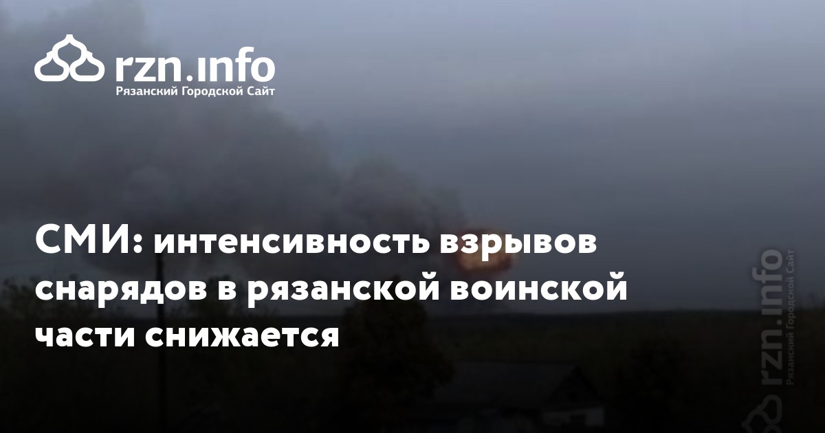 Интенсивность взрывов снарядов в рязанской воинской части снижается, сообщает РИА Новости ссылаясь на министерство обороны России.
