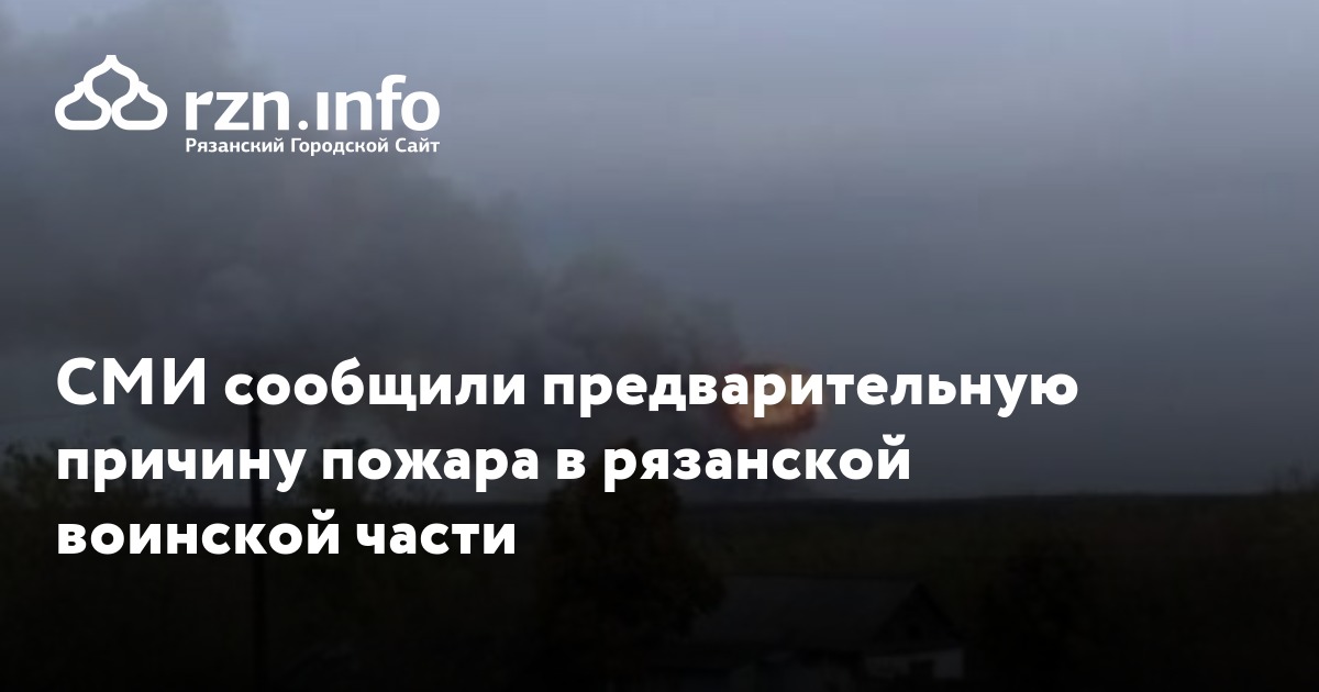 СМИ сообщили предварительную причину пожара в рязанской воинской части