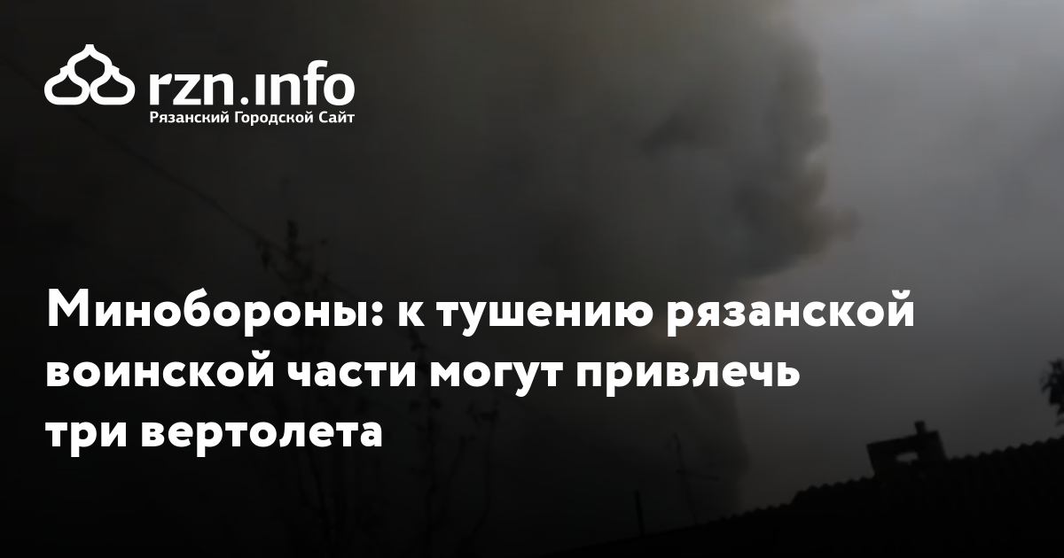Минобороны: к тушению рязанской воинской части могут привлечь три вертолета