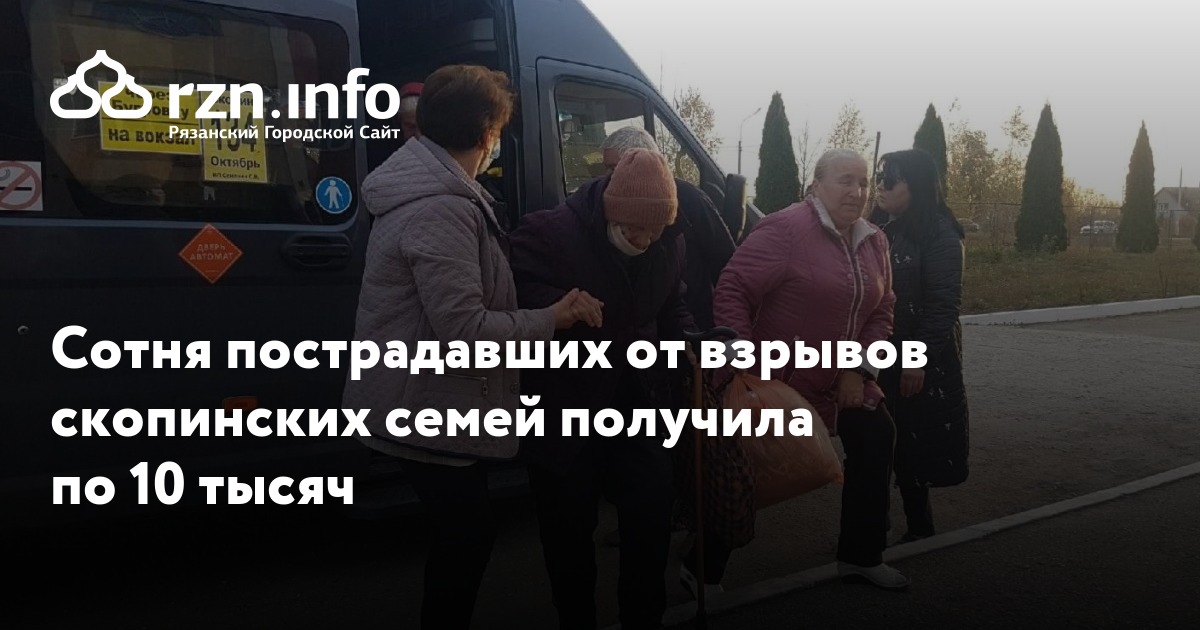 Сотня скопинских семей, пострадавших от взрывов в воинской части, получила по десять тысяч рублей на неотложные нужны. Об этом сообщил сайт рязанского правительства.