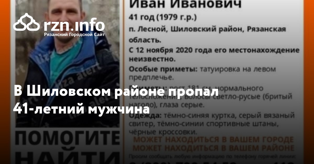 В Шиловском районе пропал 41-летний Иван Иванович Аносов из поселка Лесной. Об этом сообщили волонтеры отряда «Лиза Алерт».