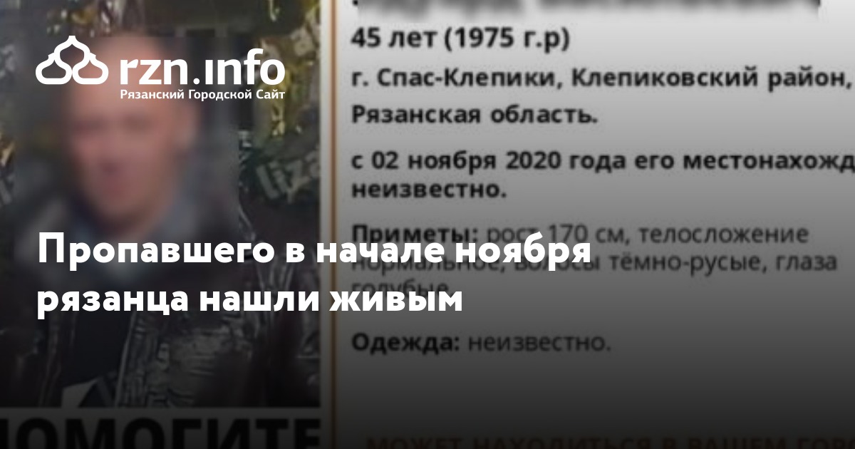 Пропавшего в начале ноября рязанца нашли живым