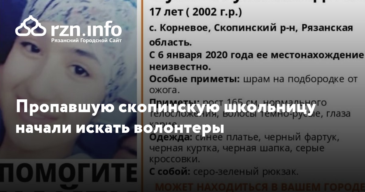 Пропавшую скопинскую школьницу начали искать волонтеры