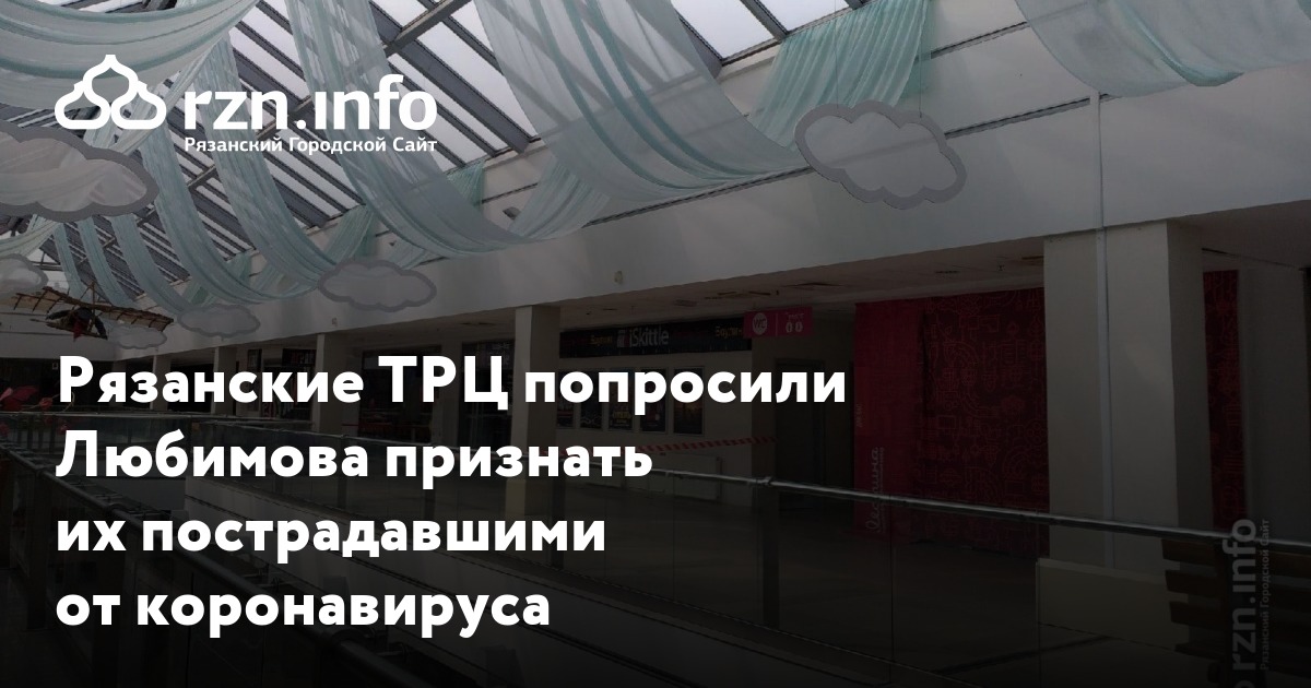 Рязанские ТРЦ попросили Любимова признать их пострадавшими от коронавируса