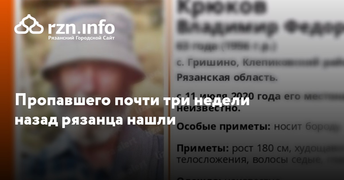 Пропавшего почти три недели назад рязанца нашли