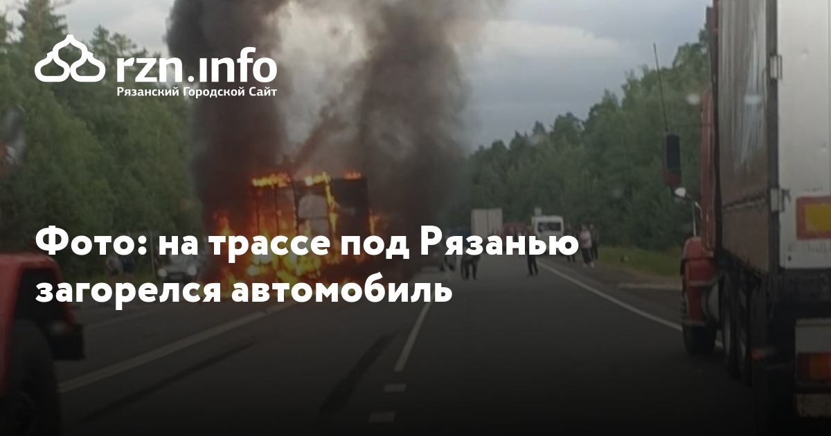 Вечером в пятницу, 24 июля, на трассе под Рязанью в сторону Солотчи загорелся автомобиль. Фото с места ДТП появилось «ВКонтакте».
