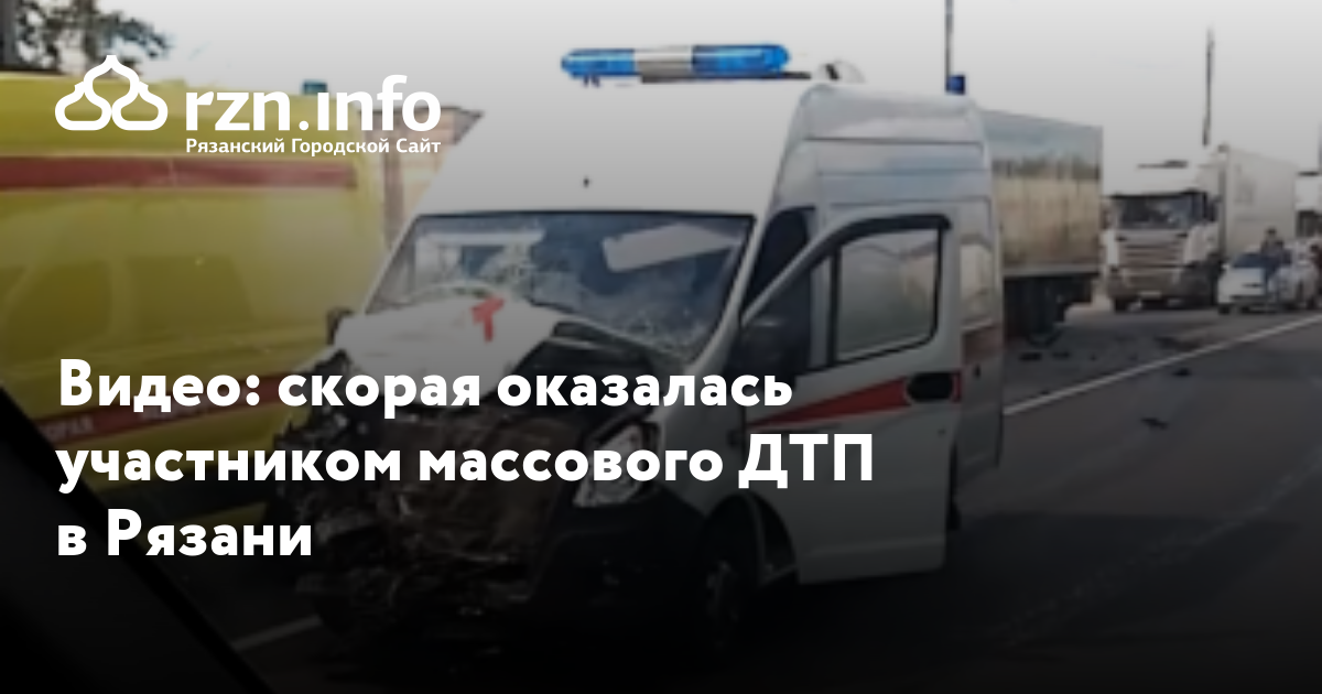 Скорая оказалась участником массового ДТП в Рязани, соответвующее видео появилось в соцсети во «ВКонтакте».