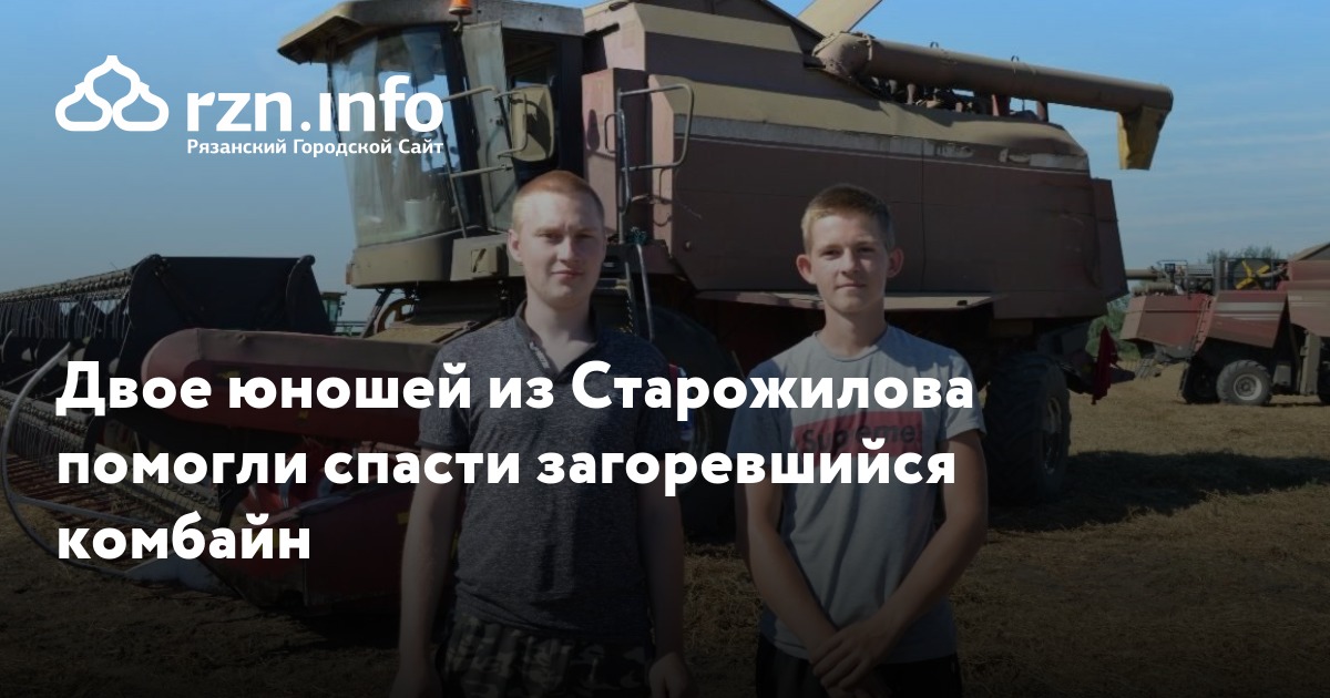 В Старожилове двое юношей — Дмитрий Платонов и Руслан Цуцман — помогли спасти комбайн, загоревшийся во время жатвы. Об этом пишет ИД «».
