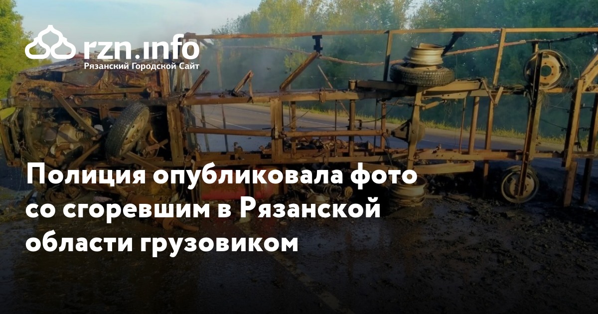 Полиция опубликовала фото со сгоревшим в Рязанской области грузовиком