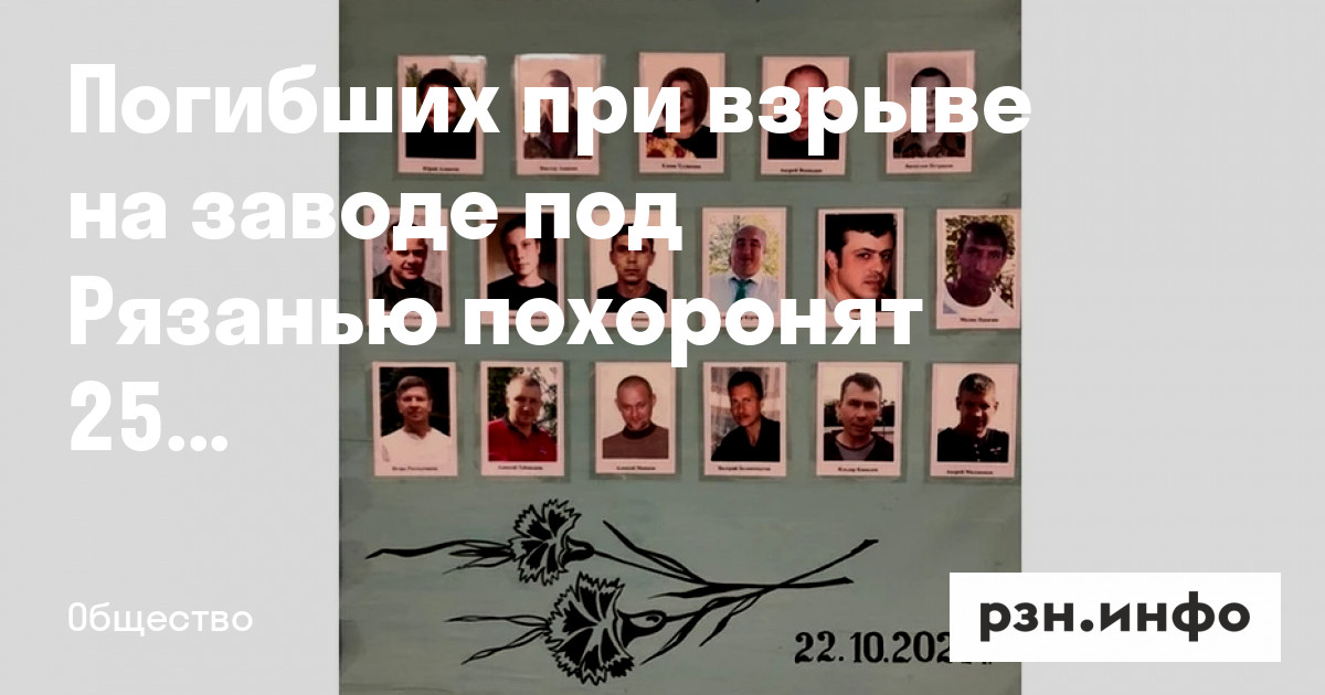 Прощание с погибшими в пороховом цеху рабочими завода состоится 25 октября в 11 утра. Об этом сообщает «КП-Рязань».