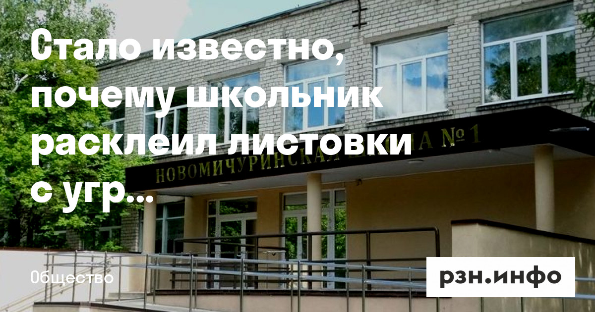 Напомним, записки с угрозами устроить расстрел в новомичуринской школе № 1 появились на подъезде одного из ближайших домов вечером в пятницу, 1 октября. Полиция устроила проверку. Автора нашли.