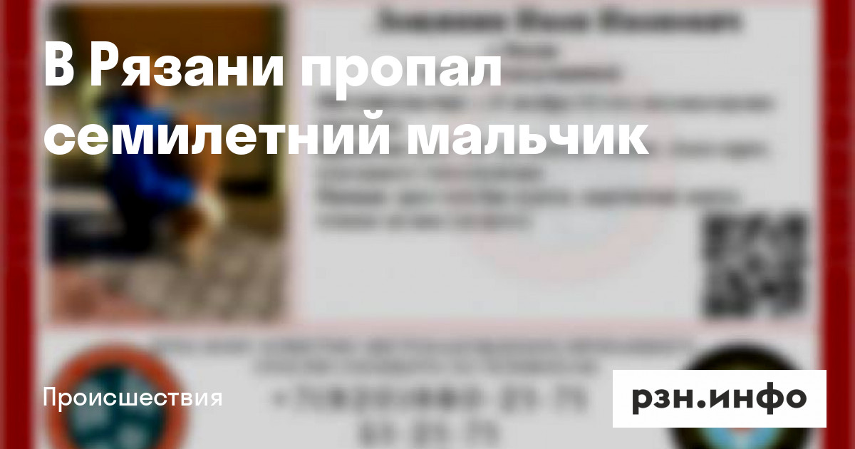 В Рязани пропал семилетний мальчик