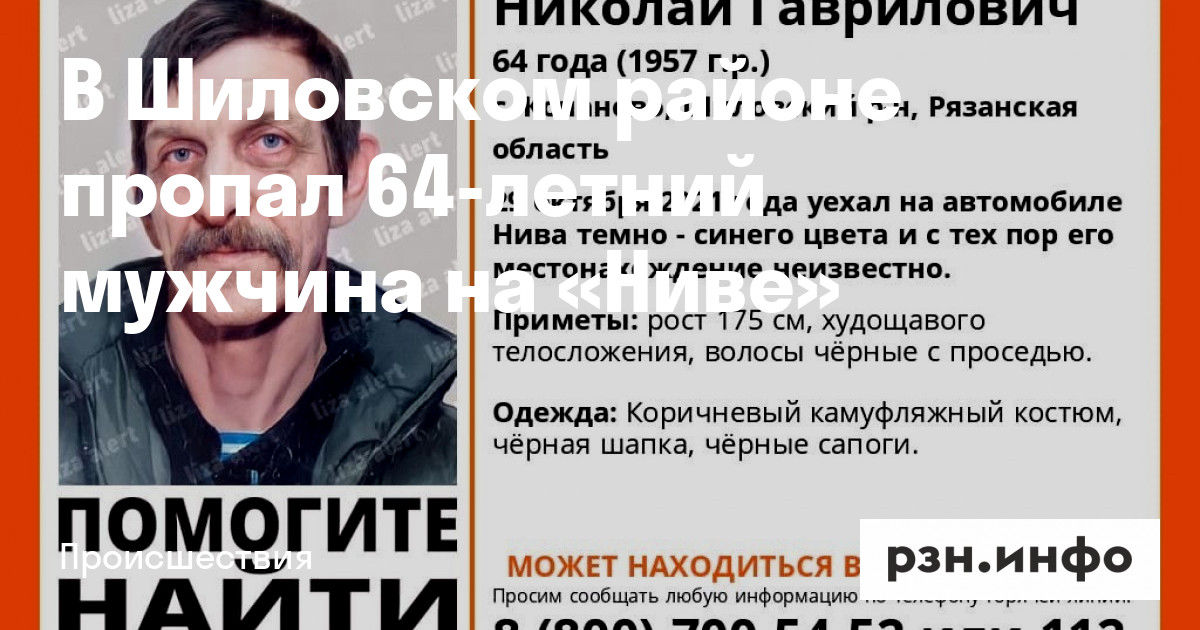 В селе Копаново Шиловского района пропал Николай Гаврилович Гутор 1957 года рождения. Об этом сообщают волонтеры отряда «ЛизаАлерт».