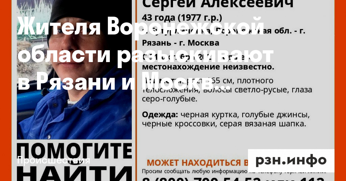 Пропал 43-летний житель города Бутурлиновка Воронежской области. Мужчина может находиться в том числе в Рязани или Москве. О поисках сообщают волонтеры «Лиза Алерт».