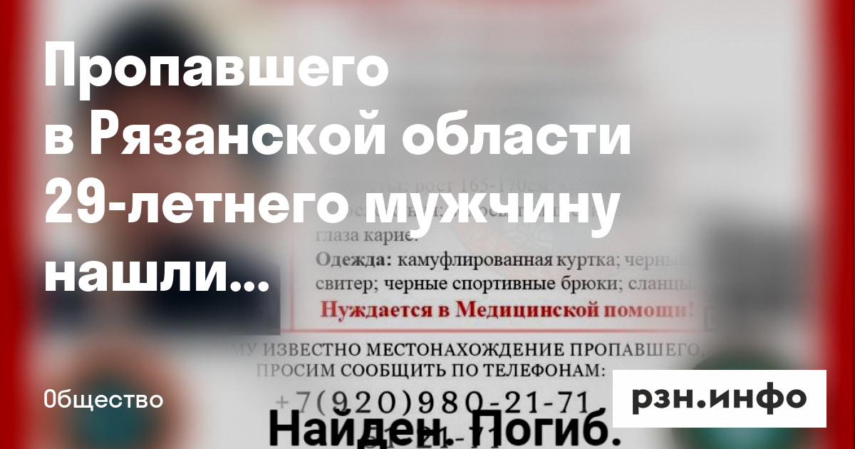 Пропавшего в Рязанской области 29-летнего мужчину нашли мертвым