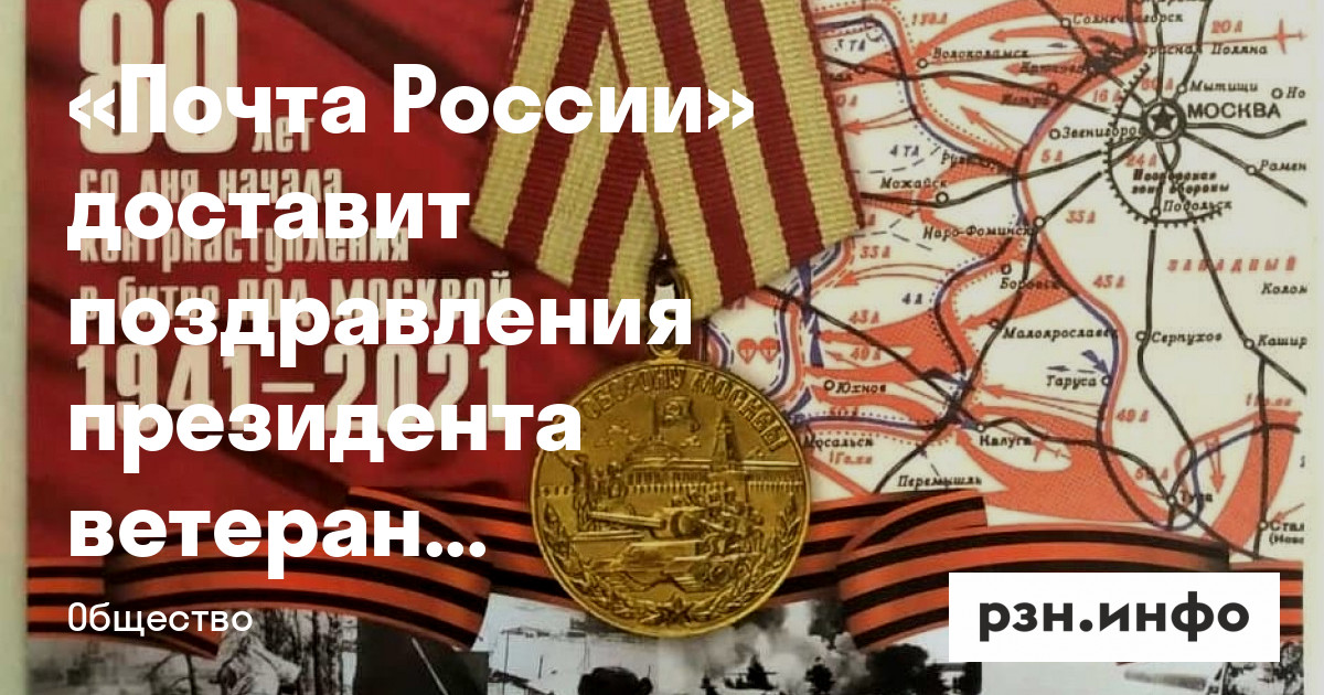 Накануне 80-й годовщины начала контрнаступления советских войск в битве под Москвой «Почта России» доставит ветеранам Великой Отечественной войны, награжденным медалью «За оборону Москвы», персональные поздравления, подписанные президентом России. С 1 по 4 декабря включительно более 900 почетных адресатов по всей стране, в том числе и в Рязанской области, получат поздравление главы государства.