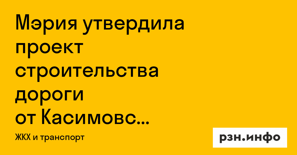 Мэрия утвердила проект строительства дороги от Касимовского до Муромского шоссе в Рязани
