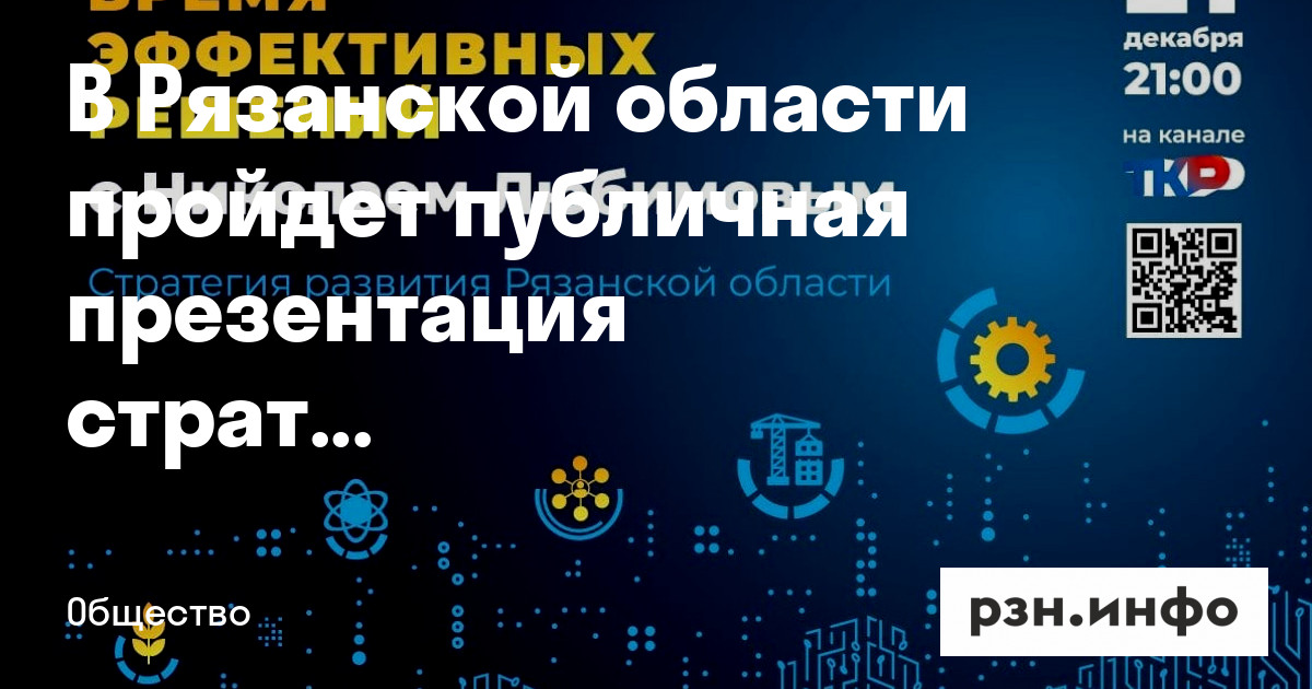 В Рязанской области пройдет публичная презентация стратегии развития региона. Она состоится 21 декабря в онлайн и офлайн форматах на 55 площадках всех муниципальных образований региона.