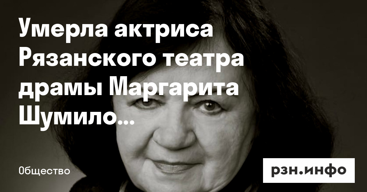 Скончалась заслуженная артистка России, актриса Рязанского театра драмы Маргарита Шумилова. Ей было 80 лет. Об этом на своей странице во «ВКонтакте» сообщил министр культуры и туризма Рязанской области Виталий Попов.