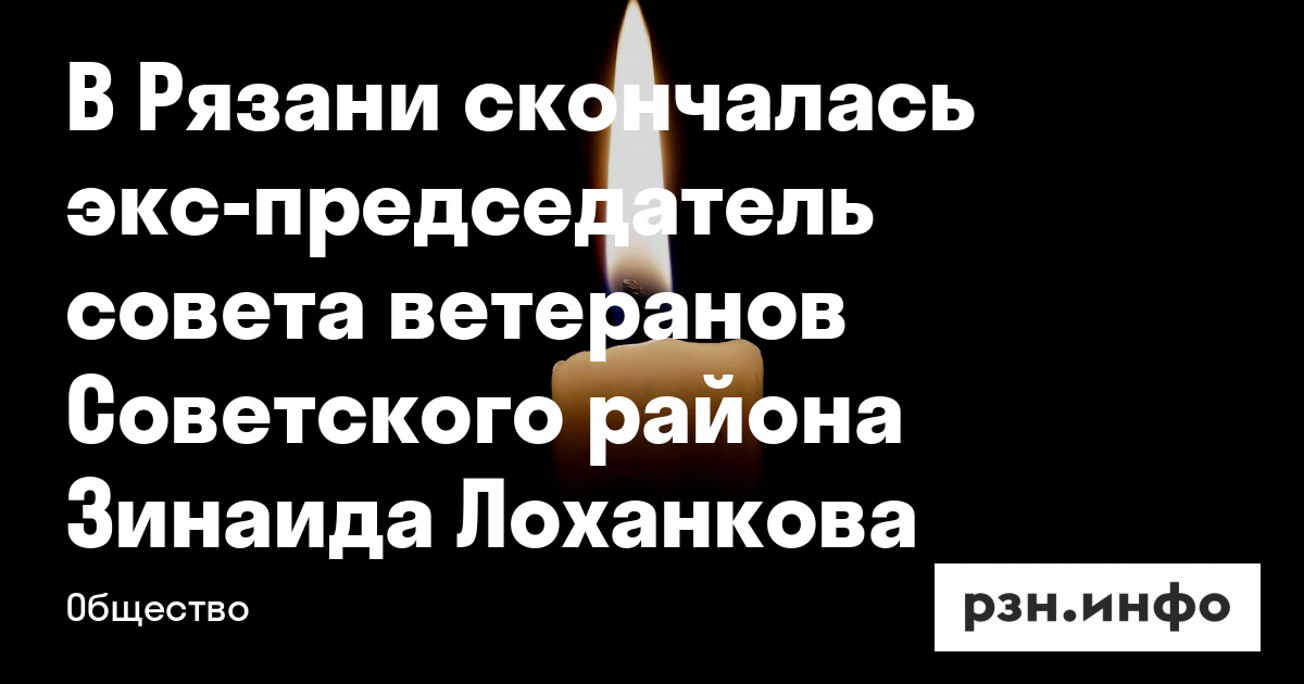 Скончалась бывший председатель совета ветеранов Советского района Зинаида Лоханкова. Об этом пишут «Рязанские Ведомости» в некрологе.