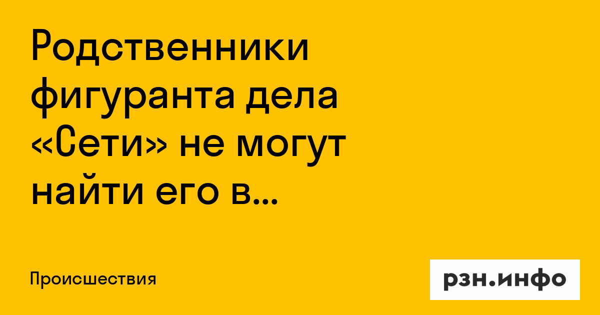 Родственники фигуранта дела «Сети"* не могут найти его в рязанской колонии. Об том пишет медиапортал «ОВД-Инфо». Речь идет о Максиме Иванкине. Он получил 13 лет лишения свободы 5 сентября. Его этапировали из чувашской исправительной колонии № 9 в неизвестном направлении. Некоторое время он находился СИЗО-1 Нижнего Новгорода, однако уже 9 числа близким заключенного сообщили, что тот убыл в СИЗО-1 Рязани.