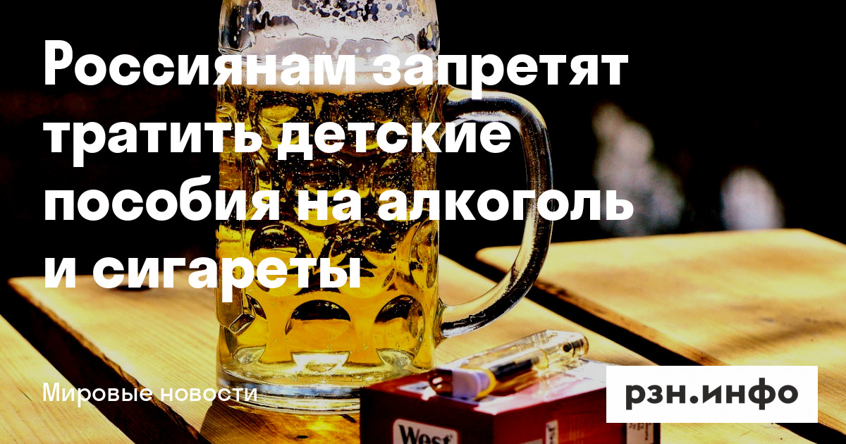 Россиянам запретят тратить детские пособия на алкоголь и сигареты. Об этом пишут «Известия».