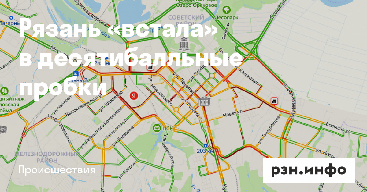 Рязань в понедельник, 17 января, «встала» в десятибалльные пробки. Об этом свидетельствуют данные с сайта «Яндекс.Пробки».