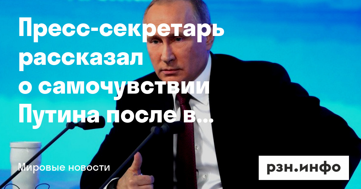 Пресс-секретарь президента Дмитрий Песков сообщил, что Владимир Путин чувствует себя хорошо.