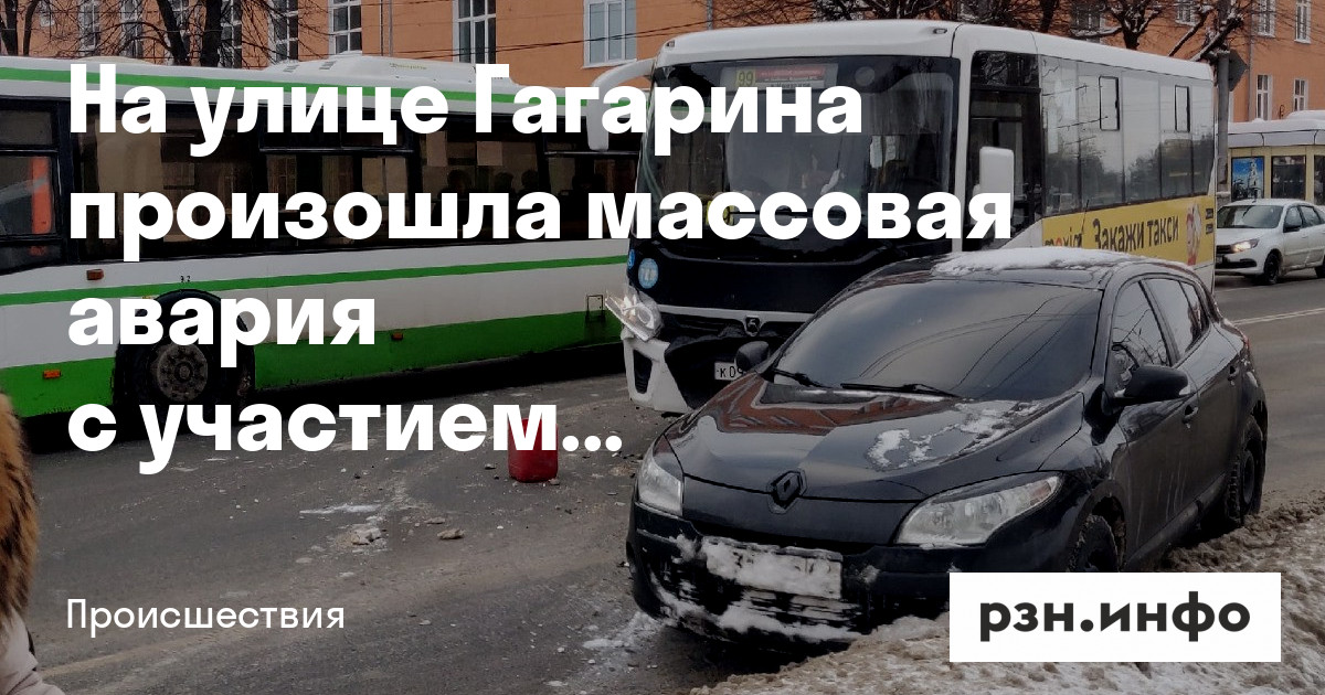 На улице Гагарина произошло массовая авария с участием маршрутки. Об этом РЗН. инфо сообщили очевидцы.