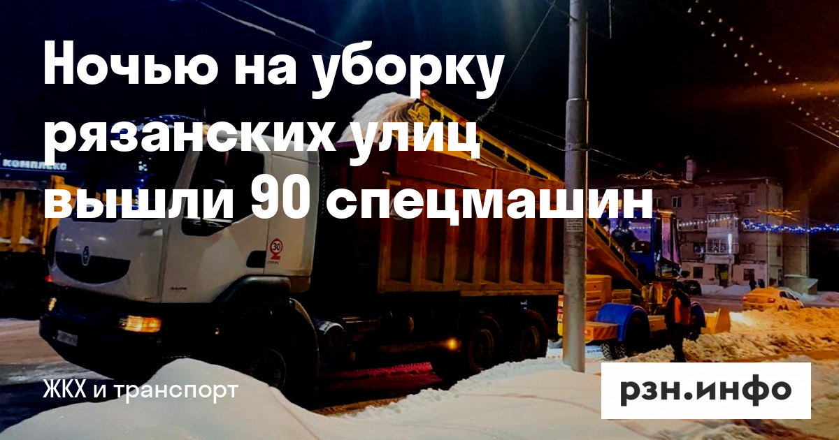 Ночью на уборку рязанских улиц вышли 90 спецмашин. Об этом сообщили на сайте мэрии.