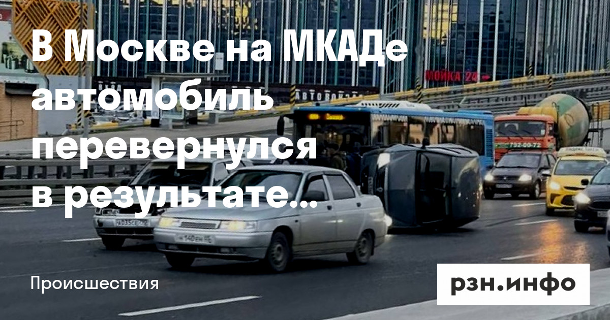 В Москве на МКАДе автомобиль перевернулся в результате массового ДТП