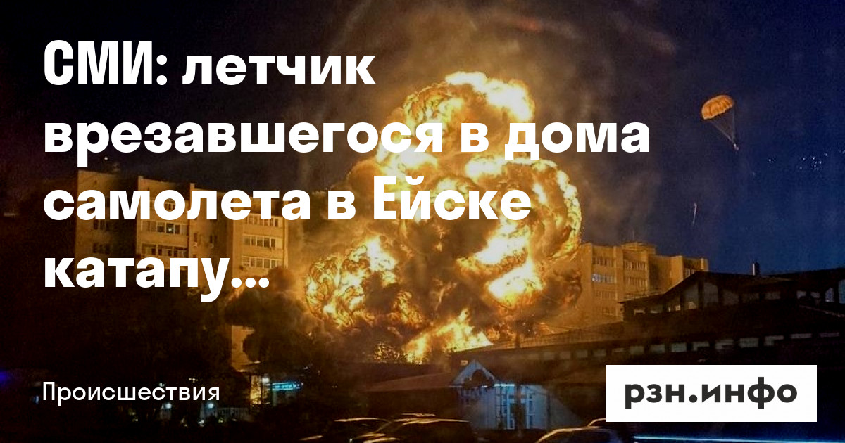Летчик самолета, врезавшегося в дома в Ейске, мог выжить. Рядом с местом происшествия заметили парашютиста, сообщил телеканал «Звезда».