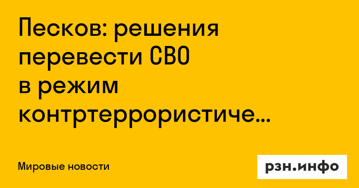 Песков: решения перевести СВО в режим контртеррористической операции не принималось