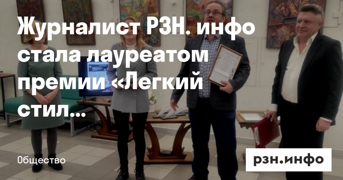 Журналист РЗН. инфо стала лауреатом премии «Легкий стиль»