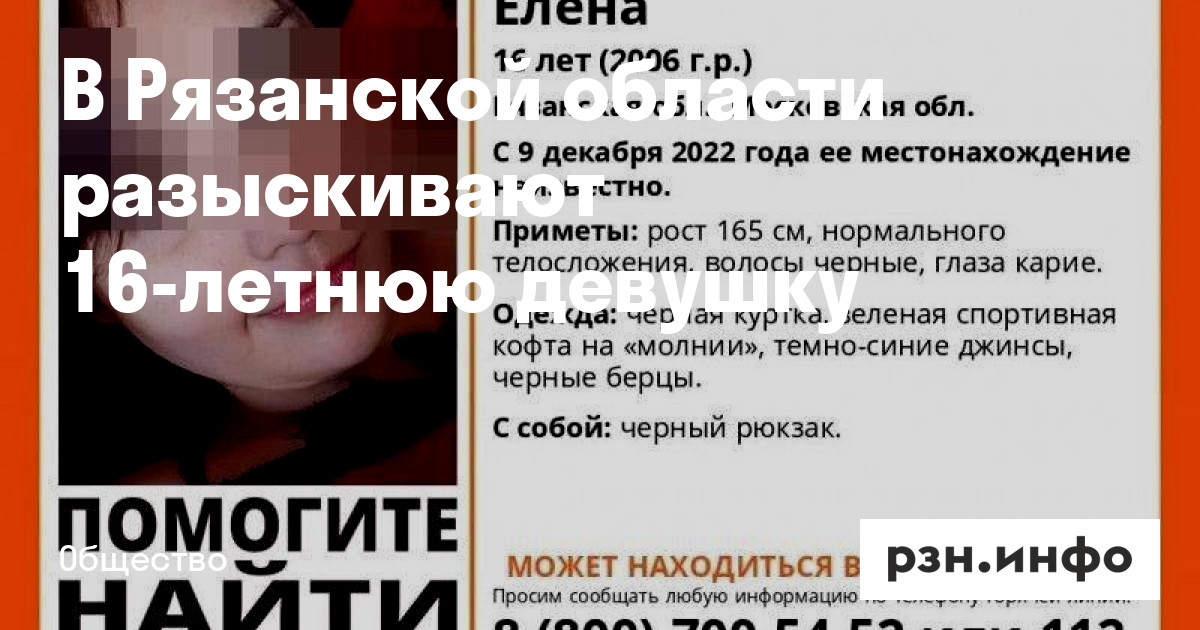 Рязанцев попросили помочь в поисках 16-летней Елены Жунгиету. Ориентировку на поиск опубликовал поисково-спасательный отряд «ЛизаАлерт».