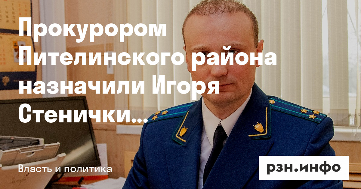 Прокурором Пителинского района назначили Игоря Стеничкина. Об этом стало известно РЗН.инфо.