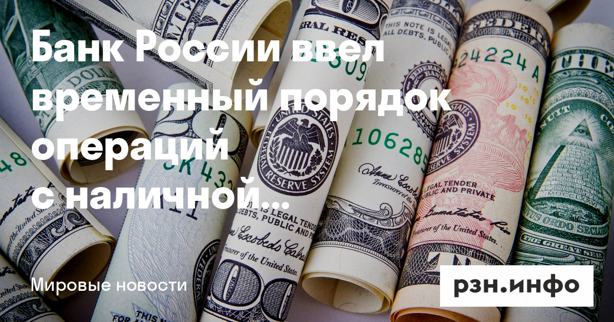 Банк России ввел временный порядок операций с наличной валютой. Об этом в среду, 9 марта, сообщили РИА Новости со ссылкой на сообщение регулятора.