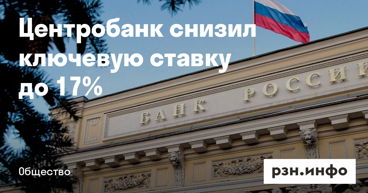 Центробанк снизил ключевую ставку до 17%