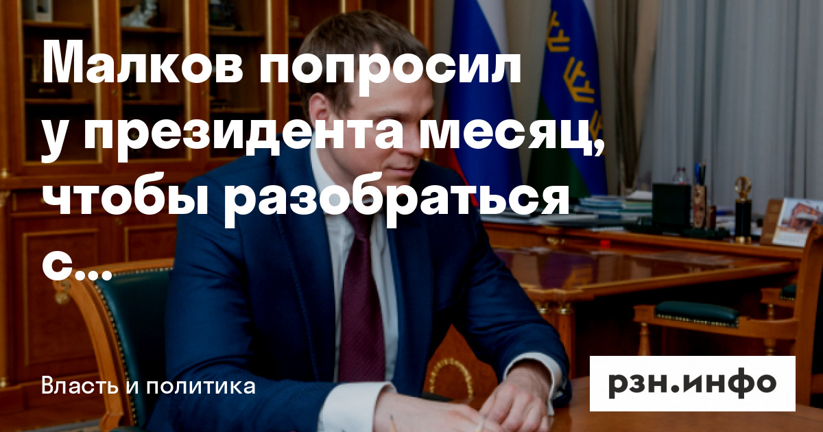 Врио губернатора Рязанской области Павел Малков попросил у Владимира Путина месяц, чтобы разобраться с проблемами региона. Об этом говорится на сайте Кремля.