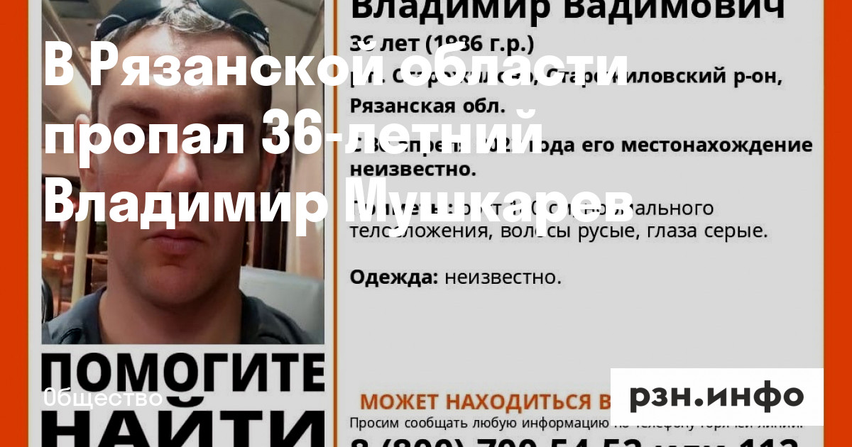 В Рязанской области пропал 36-летний Владимир Мушкарев. Об этом сообщил поисково-спасательный отряд «Лиза Алерт».