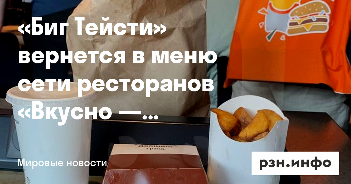 «Биг Тейсти» вернется в меню сети ресторанов «Вкусно — и точка». Об этом сообщило ТАСС со ссылкой на источник.