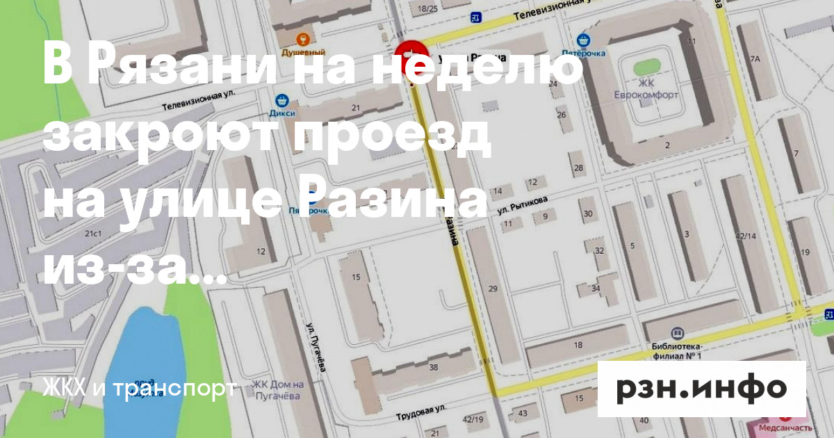 В Рязани на неделю закроют проезд на улице Разина из-за ремонтных работ