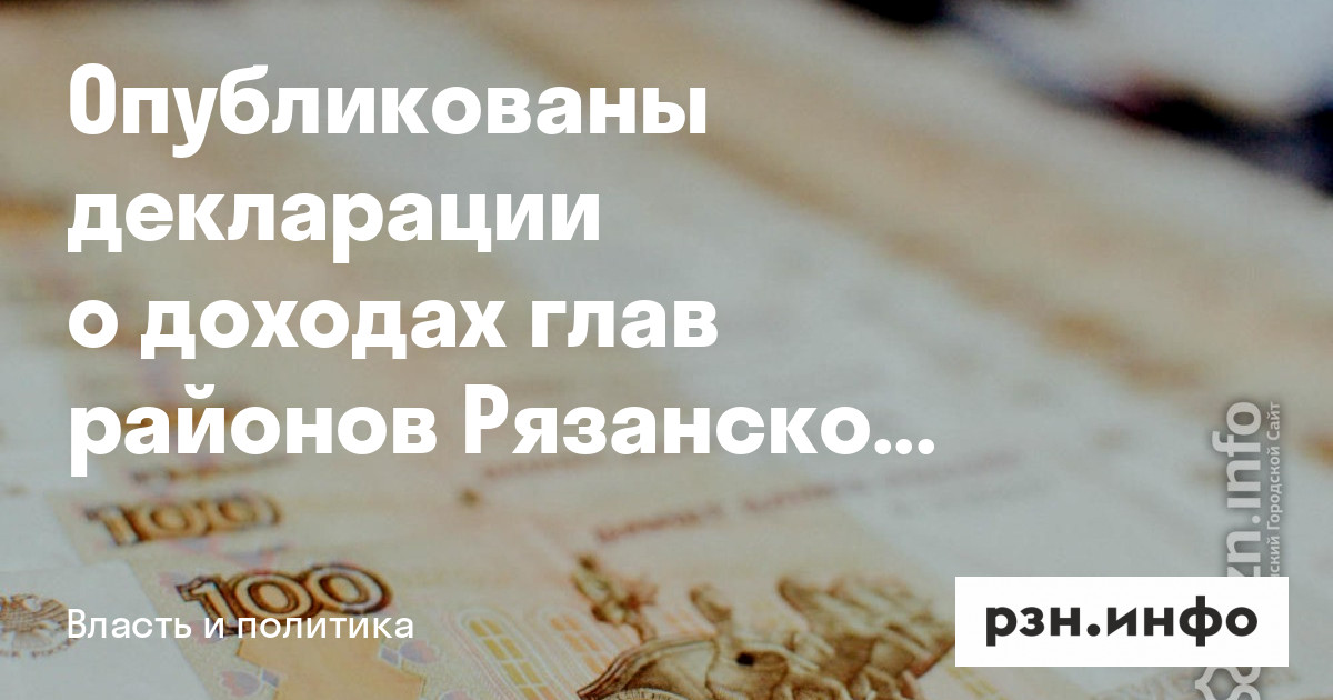 Опубликованы декларации о доходах глав районов Рязанской области за 2021 год. Документы разместили на сайте органов власти.