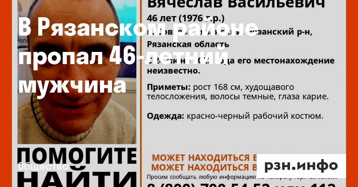 В Рязанском районе пропал 46-летний мужчина