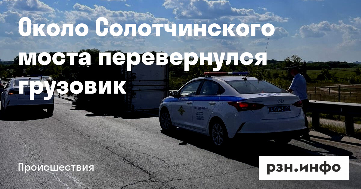 Около Солотчинского моста перевернулся грузовик. Об этом РЗН. инфо сообщили очевидцы.
