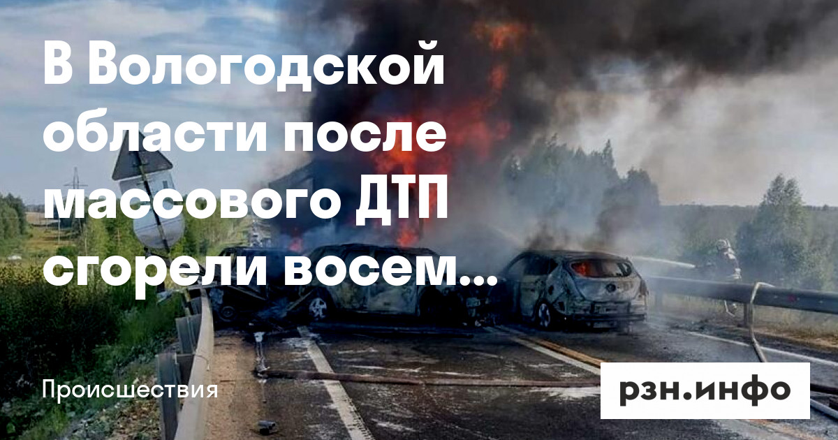 В Вологодской области после смертельного массового ДТП сгорели восемь машин
