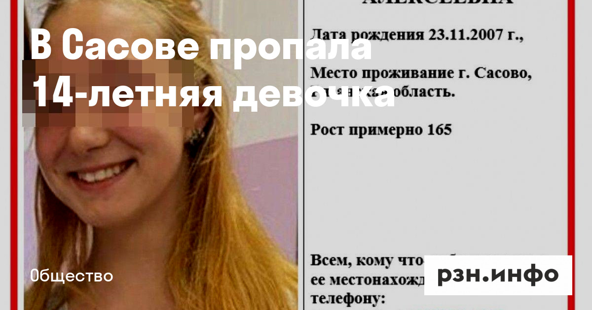 В Сасове пропала 14-летняя девочка. Об этом сообщили в паблике «Типичное Сасово».