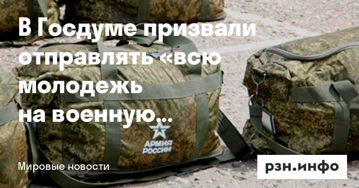В Госдуме призвали отправить всю молодежь на военную подготовку, чтобы быть в резерве российской армии. Об этом в четверг, 12 января, заявил член комитета по обороне, генерал-лейтенант Виктор Соболев, сообщила «Национальная служба новостей».