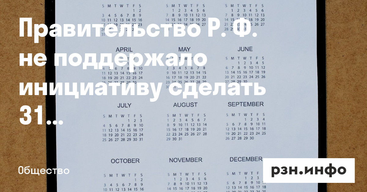 Правительство России не поддержало инициативу сделать 31 декабря выходным днем