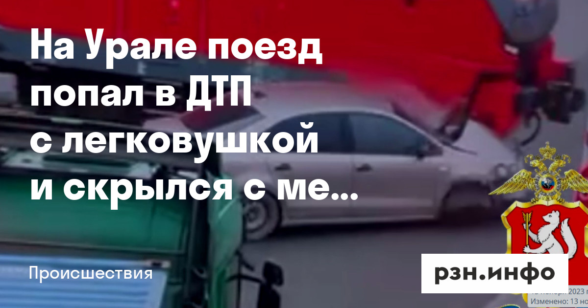 В Екатеринбурге 13 ноября поезд столкнулся с легковушкой и скрылся с места происшествия. Об этом сообщили в Telegram-канале «112».
